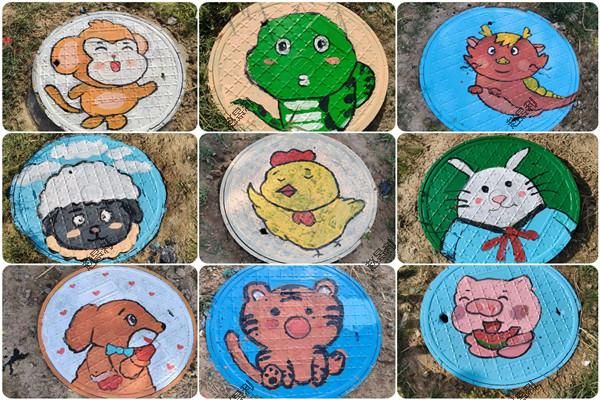 活动现场,师生们以井盖为独特画布,将动物、自然等元素巧妙融入创作之中,绘制出了憨态可掬的小羊、灵动俏皮的小蛇、可爱讨喜的小猪等图案。这些色彩明快的卡通形象与蓝天绿草相互映衬,为宁静的宿舍区注入了蓬勃生机与活泼气息,成为了校园文化建设的生动注脚。
